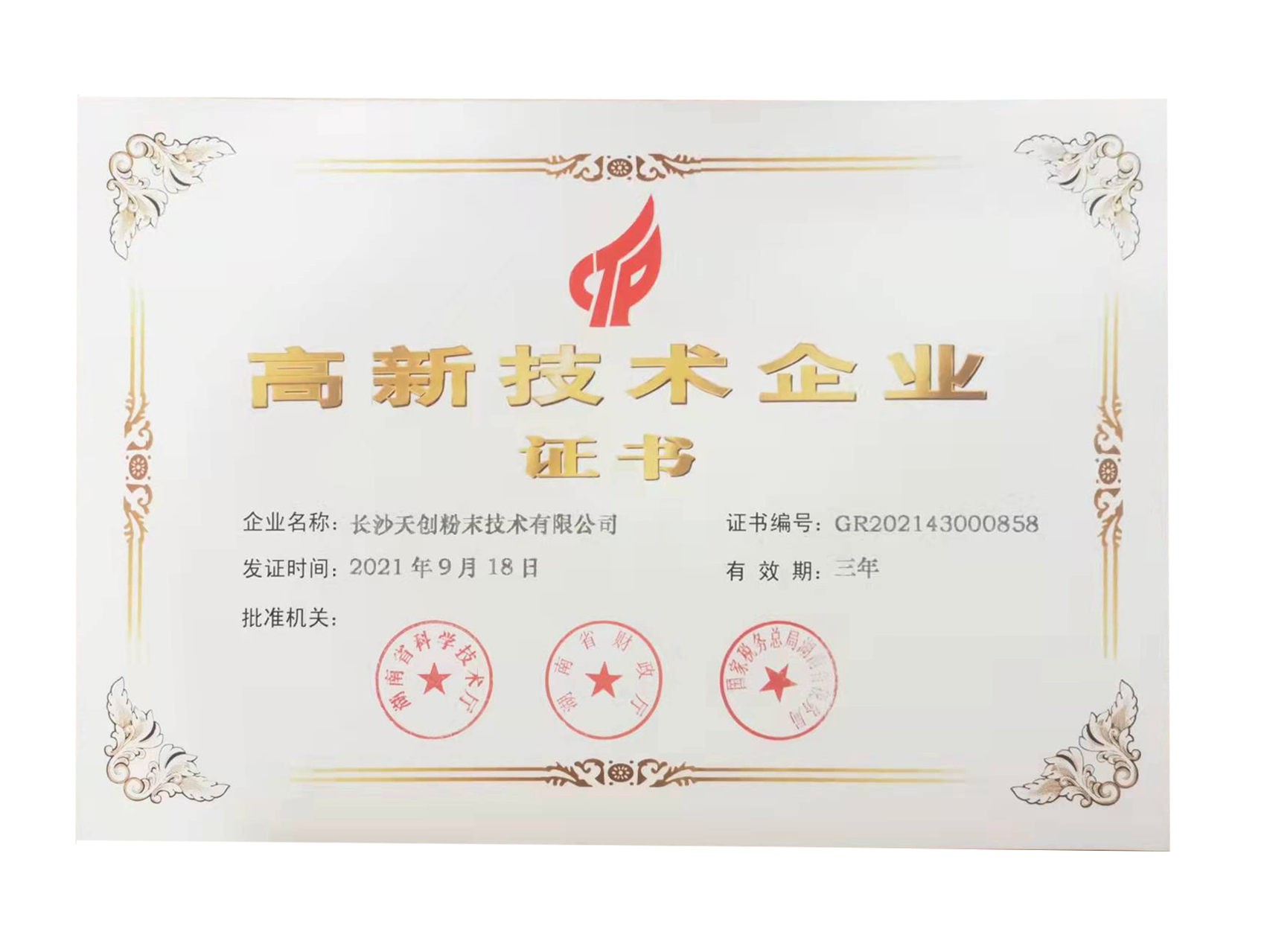 摘要:長沙天創粉末技術有限公司獲得高新技術企業稱號