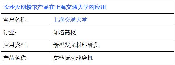 上海交通大學(xué)在天創(chuàng)粉末采購一臺實驗振動球磨機(jī),用于新型發(fā)光材料球磨實驗研發(fā)。
