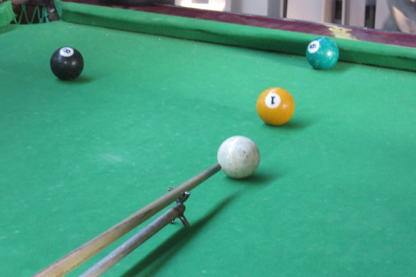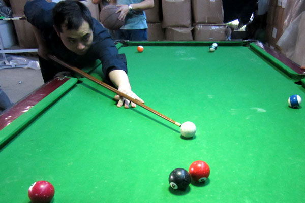 此次臺球比賽共有21人參加,圖為行星球磨機制造組小焦