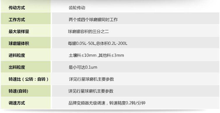 表三:雙行星式球磨機主要參數